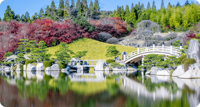 中央の湖は一枚の鏡のように空を映し、朝と夕でまったく違う表情を見せます。夜には水面にプロジェクションマッピングが映し出され、過去と未来をつなぐ“記憶のショー”が行われます。園内のキャンプ場では、静かな湖面を眺めながらゆったりと過ごすことができます。(要予約制)